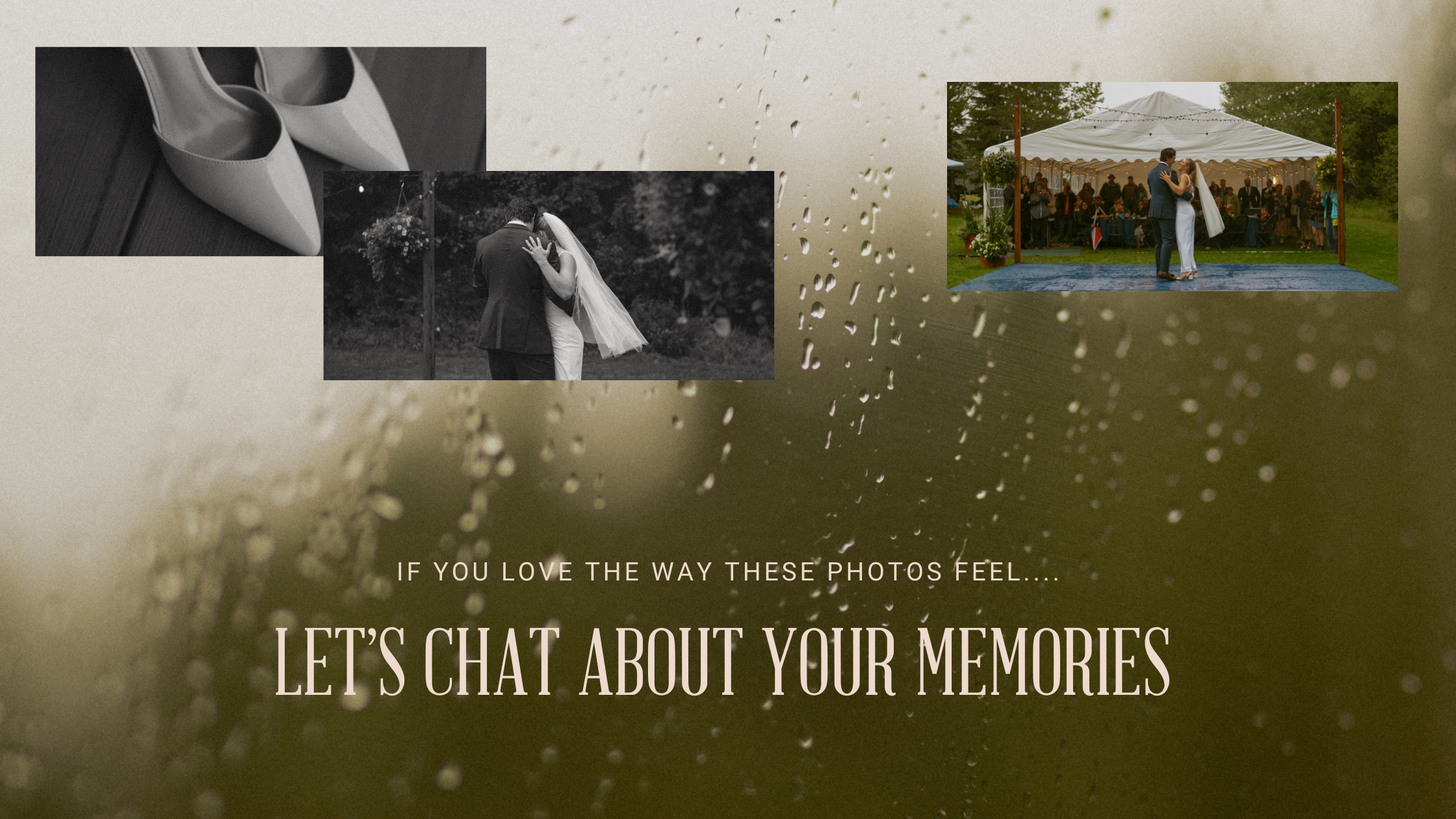 Kaycee and Corey’s wedding day was the kind that makes you believe in magic—rain-soaked, love-drenched, and unforgettable. Their family property just outside of Edson Alberta, turned into the coziest little love bubble as the rain came and never left. The sound of it became the soft soundtrack to their vows, the misty skies turned their portraits into pure poetry, and their camping trailer? That became the scene of an extra “first kiss” and the signing of their marriage license to make sure it didn’t get wet during their ceremony. The sound of the rain continued into their night as everyone enjoyed their reception under a big tent, keeping us all warm but still feeling like we were outside in the rain. I am still dreaming about their Mac & Cheese with Brisket dinner…. Later, they twirled under twinkly lights with the rain still gently falling, dancing like it was just the two of them in the world. You know what they say about rain on your wedding day! Their wedding will forever stay in my heart as one of my favourites, watching their friends and family share the love amongst the storm was so special and their wedding photos feel like scenes from a movie….